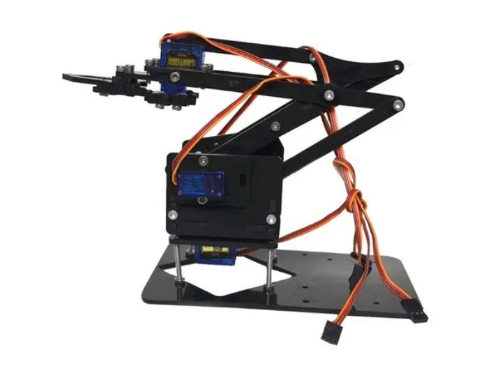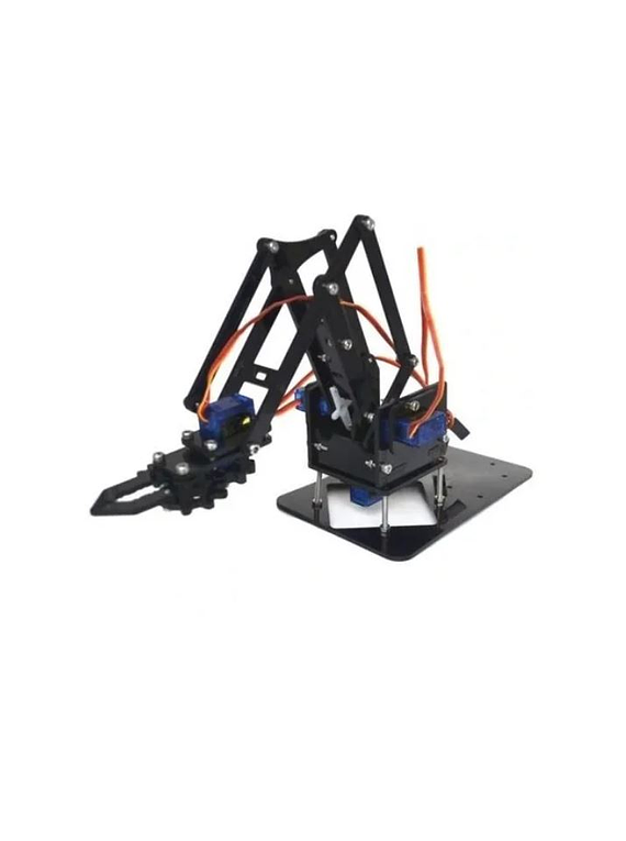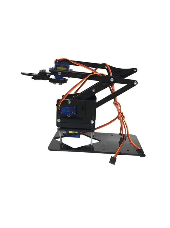 Con este chasis podrás ensamblar un Brazo robotico el cual imita los movimientos de un brazo tipo Industrial. Este brazo robotico cuenta con 3 Grados de libertad y una pinza de agarre. Puedes programarlo y usarlo con cualquier tarjeta de desarrollo como Arduino, Raspberry , Microchip , etc. Sin lugar a dudas es una excelente herramienta pedagógica de aprendizaje y diversión para estudiantes de colegios, universidades y aficionados al mundo de la tecnología y la Robotica. Ademas Tu compra incluye códigs de ejemplo para que aprendas mucho mas rápido..