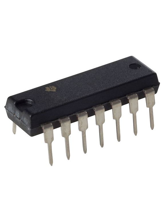 CD4093 - 4 Compuertas NAND Schmitt Trigger de 2 Entradas DIP14, funcionan como compuertas NAND de dos entradas con accion de disparador Schmitt en ambas entradas. La compuerta conmuta a distintos puntos para señales positivas y negativas. La diferencia entre el voltaje positivo (VP) y el voltaje negativo (VN) se define como voltaje de histeresis (VH)