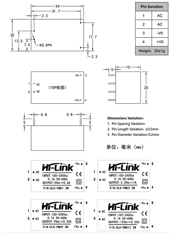 HLK-PM12 Convertidor AC DC es un dispositivo electrónico comúnmente llamado fuente de alimentación, fuente de poder o fuente conmutada. En electrónica se define como el instrumento que transforma corriente alterna en corriente continua en una o varias salidas.