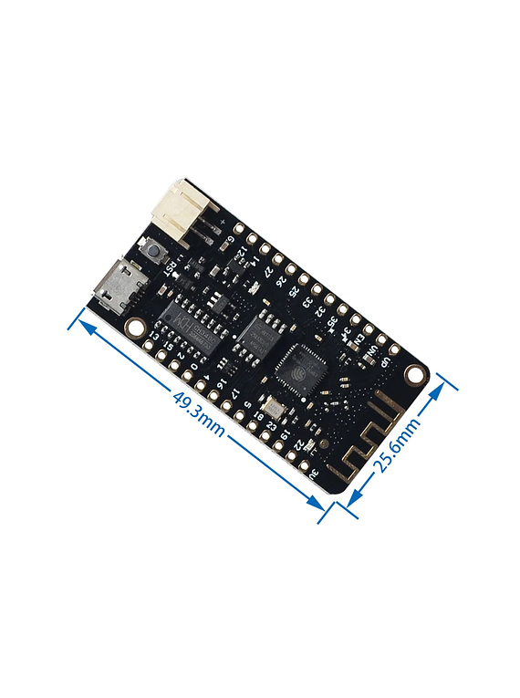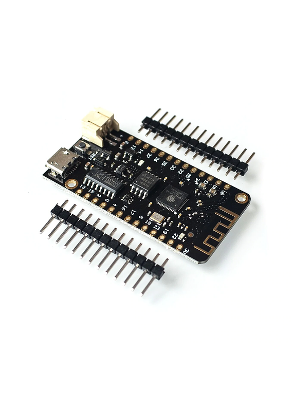 ESP32 Lolin32 Lite es una tarjeta de desarrollo WIFI/Bluetooth y al igual que otras placas ESP32, tiene un microcontrolador de doble núcleo de 32 bits que se ejecuta a 240 MHz, tiene 4 MB de almacenamiento flash y se puede programar con microPython, LUA y Arduino IDE. Se puede alimentar mediante MicroUSB o baterías de polímero de litio con una corriente de carga máxima de 500 mA.